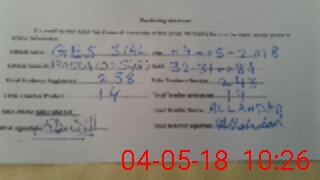 | Monitoring Date: 04-05-2018 | Start Time: 04-05-2018 09:44 AM | End Time: 04-05-2018 10:29 AM | Name of MEA: Gh**** Al**** | |