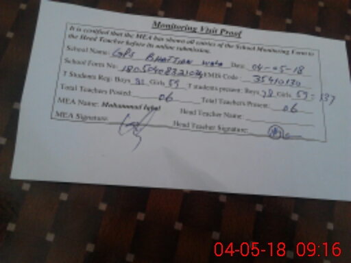 | EMIS Code: 35410130 | Name of School: GPS BHATTIAN WALA | |||