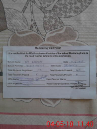 | Name: SH**** BA**** Designation: (School Headmaster's/Headmistress's) PST Phone/Cell Number: 03**** |