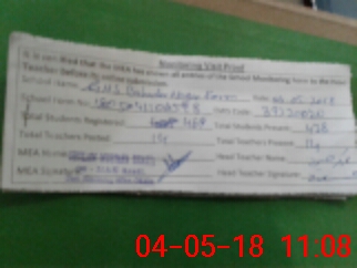 | Attendance Register | Head Teacher | MEA with School | Visit Proof |