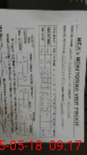 | Monitoring Date: 05-05-2018 | Start Time: 05-05-2018 08:15 AM | End Time: 05-05-2018 09:22 AM | Name of MEA: Sh**** Na**** | |