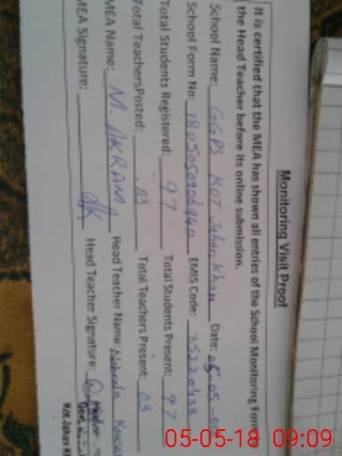 | EMIS Code: 35220438 | Name of School: GMPS KOT JAHAN KHAN | |||