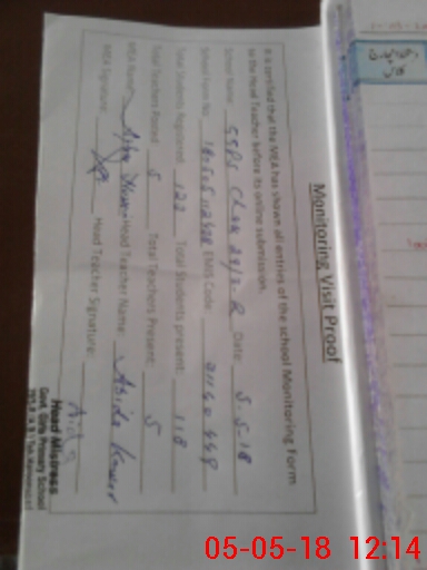 | Attendance Register | Head Teacher | MEA with School | Visit Proof |