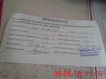 | Attendance Register | Head Teacher | MEA with School | Visit Proof |
