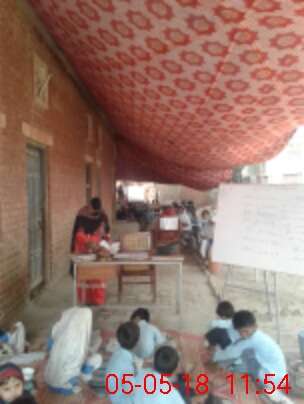 | Total no. of Classrooms: 3 No. of Classrooms Used for Teaching: 0 No. of Classrooms Storing Old Furniture, FTBs, etc: 0Comments if Any: Children are sitting under tant in scorching heat because building is dangerous condition |