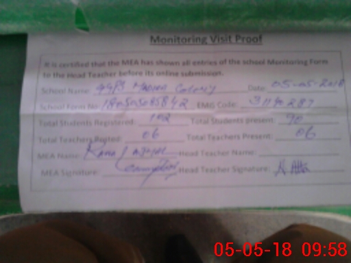 | Attendance Register | Head Teacher | MEA with School | Visit Proof |