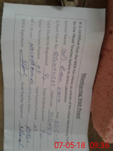 | Attendance Register | Head Teacher | MEA with School | Visit Proof |