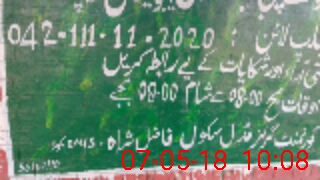 | Name: Zu**** Ha**** Designation: (School Headmaster's/Headmistress's) EST SCIENCE Phone/Cell Number: 03**** |