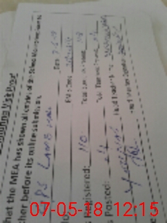 | Monitoring Date: 07-05-2018 | Start Time: 07-05-2018 11:49 AM | End Time: 07-05-2018 12:15 PM | Name of MEA: YO**** AL**** SH**** | |