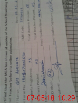 | Attendance Register | Head Teacher | MEA with School | Visit Proof |