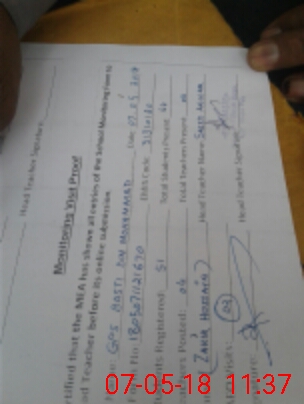 | Monitoring Date: 07-05-2018 | Start Time: 07-05-2018 11:08 AM | End Time: 07-05-2018 11:40 AM | Name of MEA: Za**** Hu**** | |