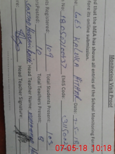 | Attendance Register | Head Teacher | MEA with School | Visit Proof |