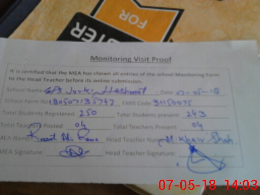 | EMIS Code: 31150075 | Name of School: GPS JORKI HASHMAT | |||