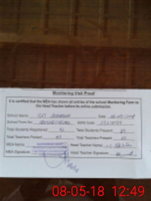 | Certified that this School was Inspected by the Undersigned MEA/DMO Today and the Information Stated Above is as Per Record. | |||||