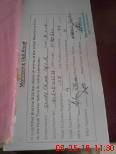 | Certified that this School was Inspected by the Undersigned MEA/DMO Today and the Information Stated Above is as Per Record. | |||||