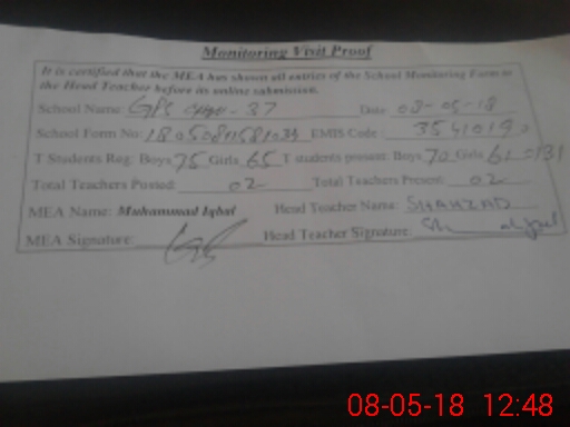 | EMIS Code: 35410190 | Name of School: GPS CHAK NO. 37 FEROZWALA | |||