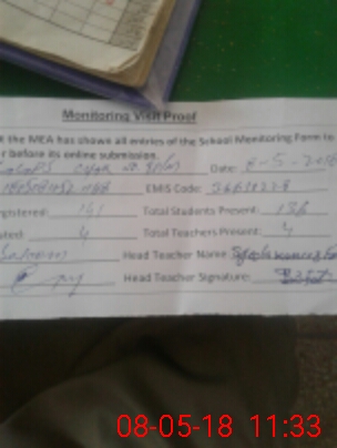 | Attendance Register | Head Teacher | MEA with School | Visit Proof |