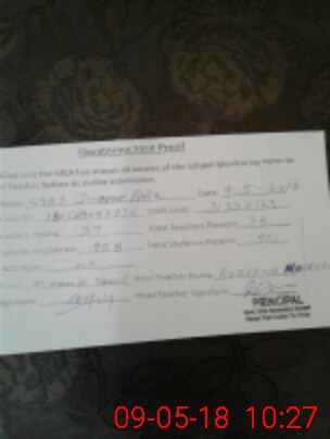| Attendance Register | Head Teacher | MEA with School | Visit Proof |