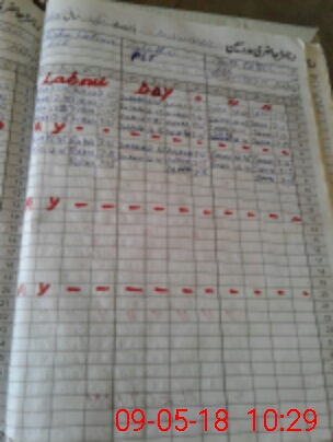 | CNIC | Full Name | Designation | R/C | Absence During Last Calender Month |