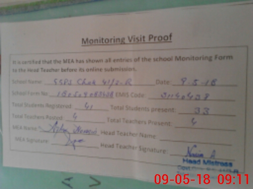| Attendance Register | Head Teacher | MEA with School | Visit Proof |