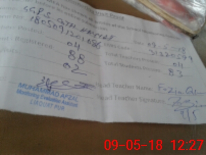 | Name: AL**** FA**** Designation: (School Headmaster's/Headmistress's) PST/PTC/JV Phone/Cell Number: 03**** |
