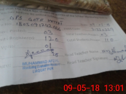 | EMIS Code: 31320229 | Name of School: GPS GOTH HAYAT | |||