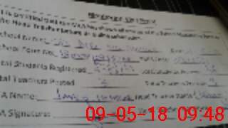 | Name: US**** YO**** Designation: (School Headmaster's/Headmistress's) ESE Phone/Cell Number: 03**** |
