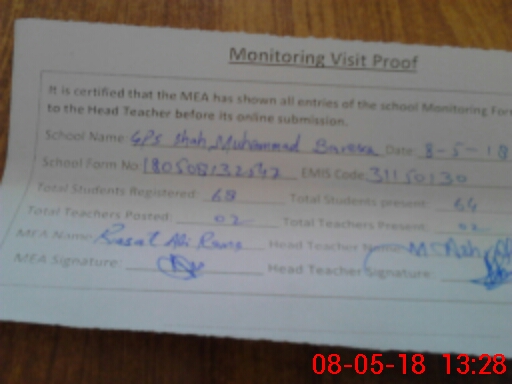 | EMIS Code: 31150130 | Name of School: GPS SHAH MUHAMMAD BARAKA | |||