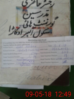 | Attendance Register | Head Teacher | MEA with School | Visit Proof |