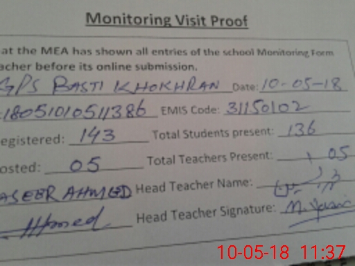 | EMIS Code: 31150102 | Name of School: GPS BASTI KHOKHRAN | |||