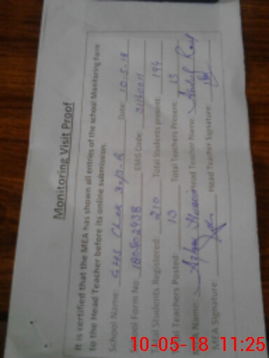 | Certified that this School was Inspected by the Undersigned MEA/DMO Today and the Information Stated Above is as Per Record. | |||||
