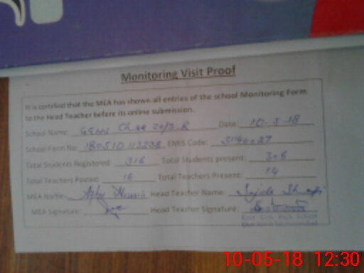 | Certified that this School was Inspected by the Undersigned MEA/DMO Today and the Information Stated Above is as Per Record. | |||||