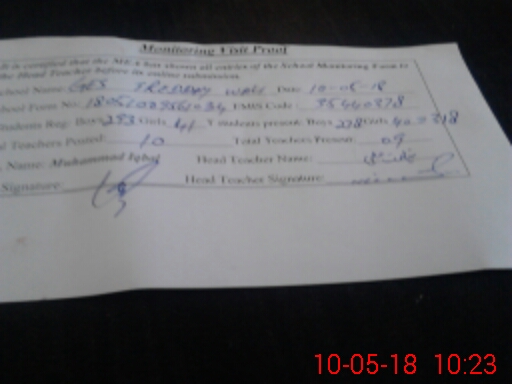 | Certified that this School was Inspected by the Undersigned MEA/DMO Today and the Information Stated Above is as Per Record. | |||||