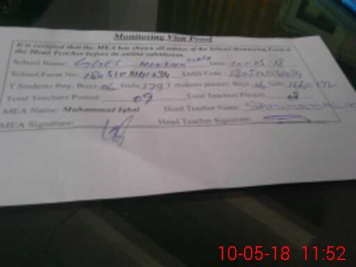 | Certified that this School was Inspected by the Undersigned MEA/DMO Today and the Information Stated Above is as Per Record. | |||||