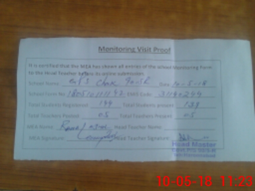 | Certified that this School was Inspected by the Undersigned MEA/DMO Today and the Information Stated Above is as Per Record. | |||||