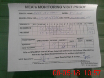 | Attendance Register | Head Teacher | MEA with School | Visit Proof |