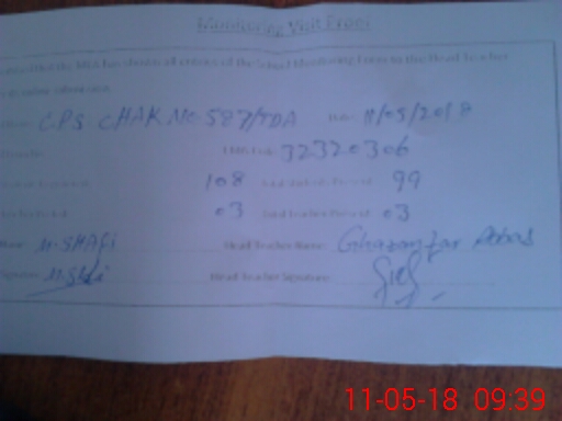 | EMIS Code: 32320306 | Name of School: GPS CHAK NO.587 TDA | |||