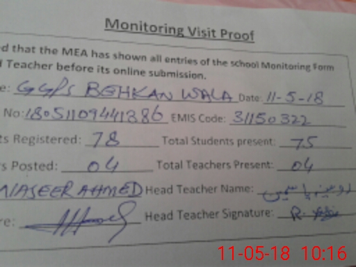 | EMIS Code: 31150322 | Name of School: GGPS BEHKAN WALA | |||