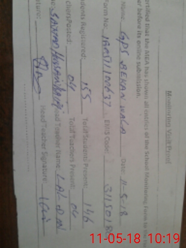 | EMIS Code: 31150186 | Name of School: GPS BEHKAN WALA | |||