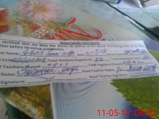 | Attendance Register | Head Teacher | MEA with School | Visit Proof |