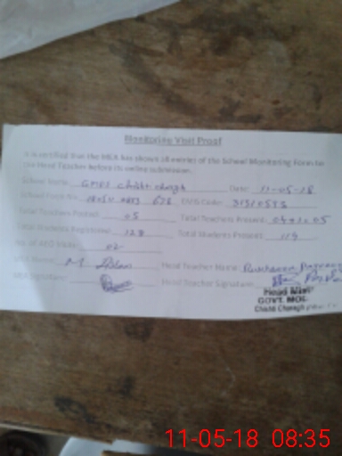 | EMIS Code: 31310598 | Name of School: GMPS CHISHTI CHARAGH | |||