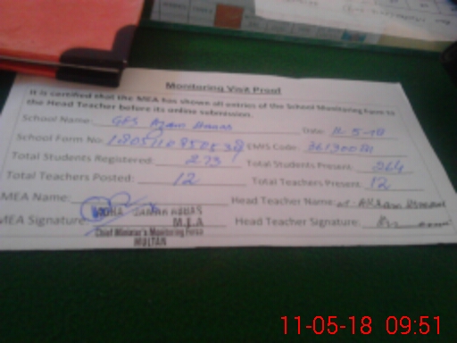 | EMIS Code: 36130081 | Name of School: GES AZAM HANS P/O KOTHAY WALA | |||