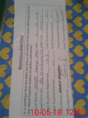 | Certified that this School was Inspected by the Undersigned MEA/DMO Today and the Information Stated Above is as Per Record. | |||||