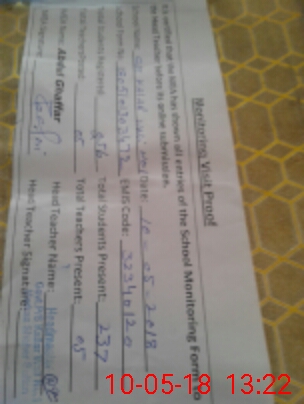 | Certified that this School was Inspected by the Undersigned MEA/DMO Today and the Information Stated Above is as Per Record. | |||||