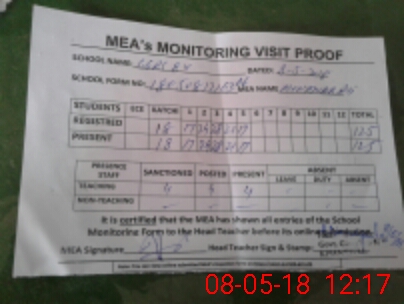 | Attendance Register | Head Teacher | MEA with School | Visit Proof |