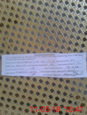 | Name: MA**** IK**** NA**** Designation: (School Headmaster's/Headmistress's) SSE Phone/Cell Number: 03**** |