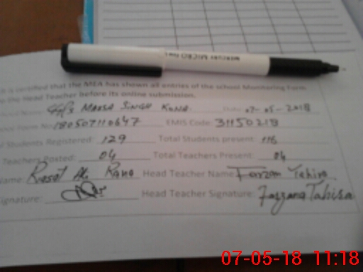 | Attendance Register | Head Teacher | MEA with School | Visit Proof |