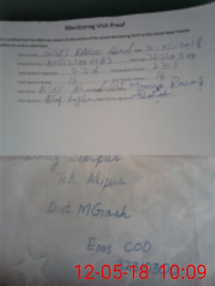 | Attendance Register | Head Teacher | MEA with School | Visit Proof |