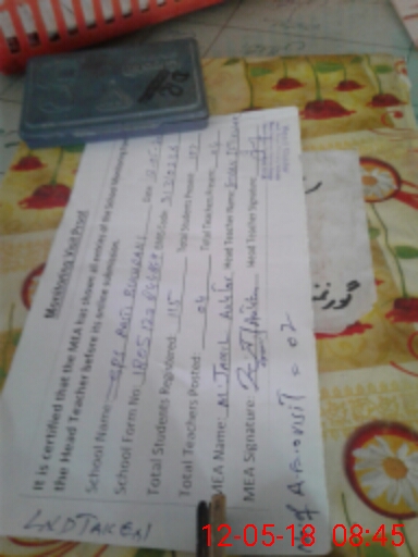 | Attendance Register | Head Teacher | MEA with School | Visit Proof |