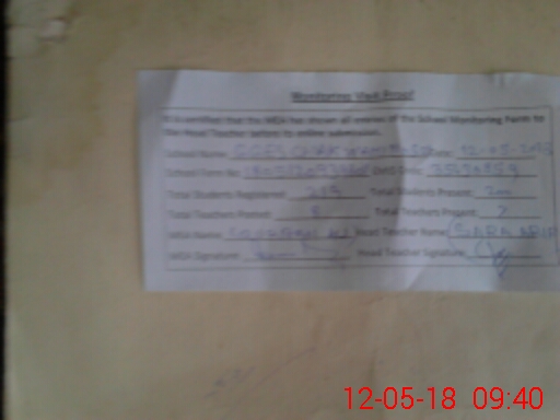 | Attendance Register | Head Teacher | MEA with School | Visit Proof |